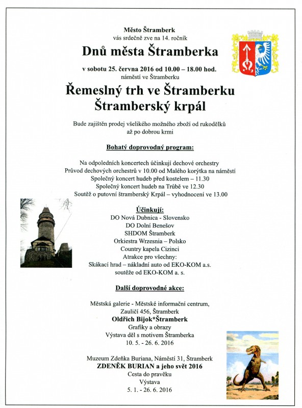 Součástí bude také Řemeslný trh ve Štramberku a Štramberský krpál. Samozřejmostí je také bohatý doprovodný program, viz. plakát.