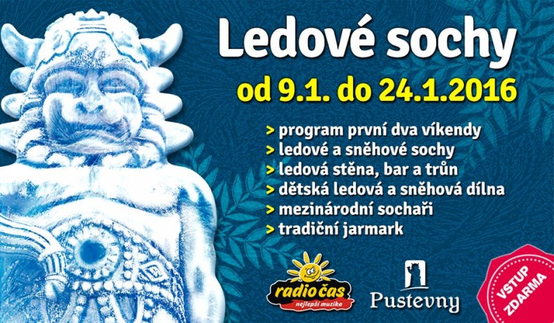 Pokud už přemýšlíte nad lednovým programem, měli byste si určitě do kalendáře poznamenat 3 data. 9.–10., 16.–17. a 23.-24. ledna 2016. Oblíbený cíl turistů z celé Moravy a Slezska, horské sedlo Pustevny, oživí po celý leden sochy z ledu a sněhu od profesionálních sochařů z nejrůznějších zemí světa. Vše doprovodí zábavný program pro děti s rádiem Čas. A stejně jako loni bude VSTUP ZDARMA.