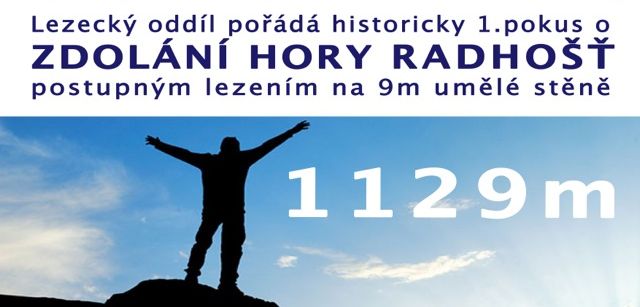 Frenštátský lezecký oddíl GEKON pořádá historicky 1. pokus o zdolání hory RADHOŠŤ postupným lezením na 9metrové umělé lezecké stěně.