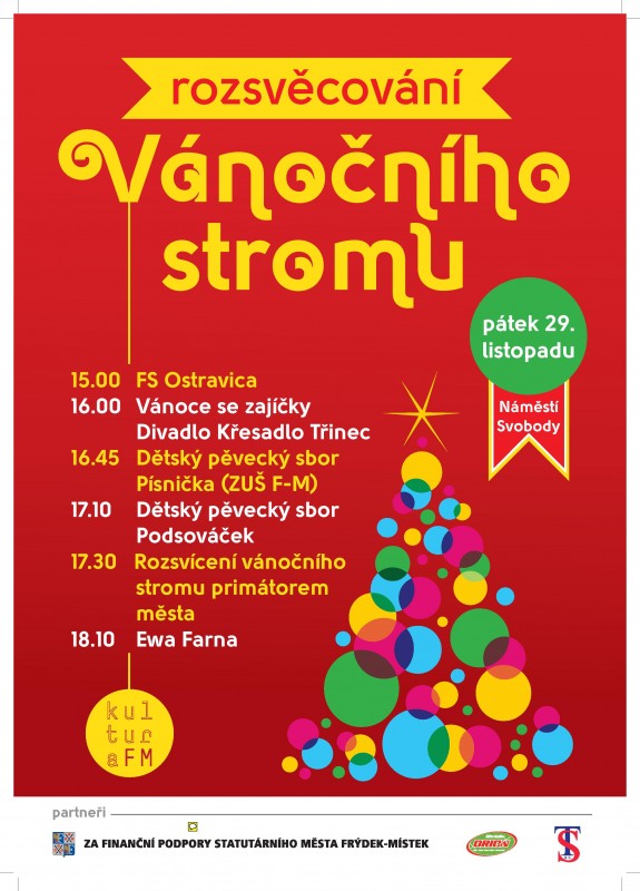Předvánoční atmosféra dýchne na obyvatele i návštěvníky města už v pátek 29. listopadu, kdy bude „Advent ve městě“ slavnostně zahájen. Místecké náměstí Svobody ožije Vánočními trhy a v podvečer, okolo půl šesté, se uskuteční slavnostní rozsvíceni Vánočního stromu, se kterým se rozzáří také celá vánoční výzdoba města. Čekání na tento okamžik zpříjemní divadelní pohádka, vystoupení folklorních a pěveckých souborů a připraveny budou i vánoční dílny, ve kterých si budou moci zájemci vyrobit drobné dárky. Děti a všichni snílci na náměstí najdou i Ježíškovu poštu a po celém náměstí se budou pohybovat také krásní, dlouhonozí andělé, a kdo ví, možná, že tomu, kdo s nimi promluví, se splní nějaké přání. Své umění předvedou i umělečtí kováři a poté, co se rozsvítí Vánoční strom, zazpívá Ewa Farna.