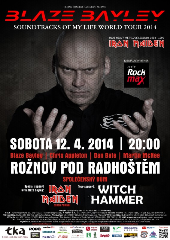 Koncert rockové legendy z Anglie Blaze Bayleyho, který v letech 1993 až 1999 působil jako zpěvák v nejslavnější heavy metalové skupině světa, tedy v Iron Maiden. Na podzim roku 2013 Blaze vydal své první Best of album Soundtracks of My Life, které obsahuje 30 písniček. CD slouží jako ústřední motiv celého WORLD TOUR 2014.