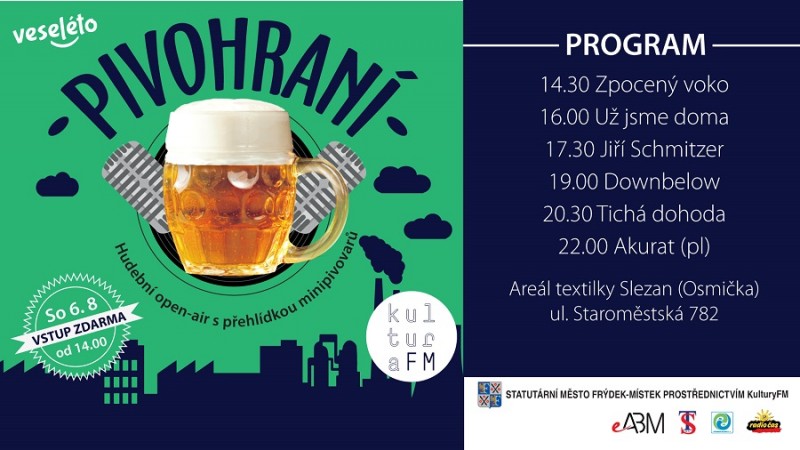 Máte rádi pivo? Možná jste dokonce pivní gurmáni! V našem kraji je spousta malých minivovarů, jejichž piva stojí za ochutnání. V posledních letech a to nejen v ČR přibylo tzv. minipivovarů. Povětšinou se jedná o malé rodinné podniky nebo i jednotlivé restaurace, které obnovují tradici vaření vlastního piva a stávají se tak pro cílového zákazníka atraktivnější. S rozmachem pivovárků se rovněž rozvinula „pivní turistika“, kdy nadšenci tohoto lahodného moku během jediného dne jich navštíví hned několik najednou a spojí to i s poznáním kraje, oblasti apod. Během festivalu Pivohraní budou mít návštěvníci jedinečnou možnost na jednom místě ochutnat hned několik značek z Frýdku-Místku a jeho nejbližšího okolí. Pohodovou atmosféru doladí atraktivní kapely v netradičním místě konání - a to v bývalém areálu textilky Slezan (Osmička) na ulici Staroměstská ve Frýdku-Místku.