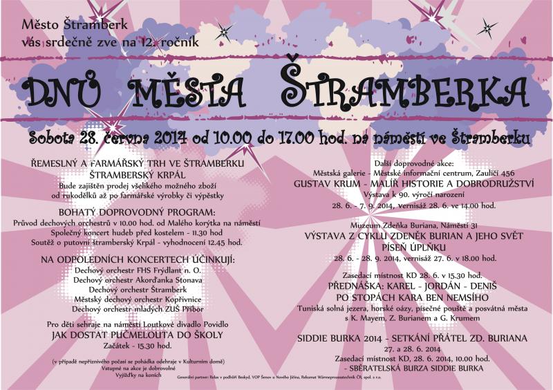 Dny města Štramberku se uskuteční přímo na náměstí (což je zastavení č. 7 naučné stezky Štramberk). Akce proběhne v pátek a v sobotu 27. - 28. 6. 2014.