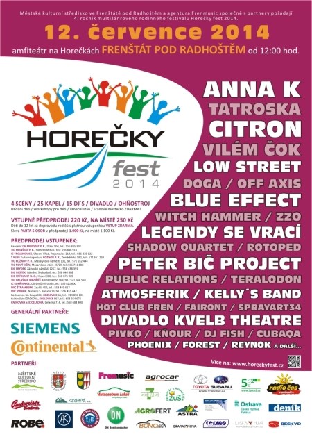 Horečky fest bude letos hostit celou řadu velkých hudebních jmen - Anna K, Blue Effect, Peter Bič Project, Elis, Vilém Čok, Citron, Tatroska, Legendy se vrací, a spousty dalších.