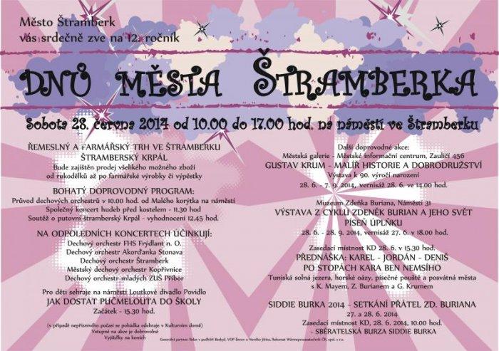 V sobotu se bude konat již 12. ročník Dnů města Štramberka. Na programu jsou řemeslné a farmářské trhy a také setkání hudebníků s názvem Štramberský krpál. Těšit se můžete na prodej všelikého možného zboží od rukodělků až po farmářské výrobky či výpěstky. Doprovodný program se uskuteční v čase 10:00 - 17:00 hodin na náměstí ve Štramberku a vystoupí v něm Dechový orchestr FHS Frýdlant n. O., Dechový orchestr Akorďanka Stonava, Dechový orchestr Štramberk, Městský dechový orchestr Kopřivnice a Dechový orchestr mladých ZUŠ Příbor. Pro děti sehraje v 15:30 hodin na náměstí Loutkové divadlo Povidlo pohádku "Jak dostat Pučmelouta do školy". V případě nepříznivého počasí se pohádka odehraje v Kulturním domě.