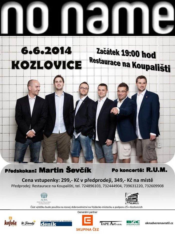Pokud máte rádi slovenskou skupinu No Name, pak nesmíte chybět na jejich koncertě v Kozlovicích. Bratři Igor, Dušan, Ivan a Roman Timko, Viliam Gutray a Zoli Sallai se v pátek představí v tamní Restauraci na koupališti od 19.00 hodin. Předskokanem slavné skupiny bude Martin Ševčík. Akci pak uzavře skupina R.U.M. Vstupenky v předprodeji stojí 299 Kč, na místě je pořídíte za 349 Kč. Část výtěžku bude použita na rozvoj dobrovolnictví na frýdecko-místecku a na podporu ZŠ v Kozlovicích, takže spojíte kulturní zážitek s dobrou věcí.