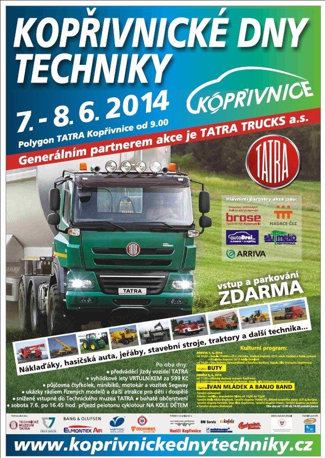 V sobotu i v neděli se zkušební polygon Tatry Kopřivnice promění v jedno velké lidské mraveniště. Konají se zde totiž tradiční Dny techniky. Jedinečná přehlídka, kterou v loňském roce navštívilo přibližně 7 tisíc lidí, nabídne statické i dynamické ukázky široké škály stavební, zemědělské, komunální, hasičské i další techniky. Cílem akce je umožnit návštěvníkům vidět co nejvíce strojů v pohybu a také se dobře pobavit na doprovodném kulturním programu. Akce se po oba dny koná v čase od 9.00 do 18.30 hodin. V doprovodném programu můžete shlédnout předváděcí jízdy vozidel Tatra (návštěvníci se mohou nechat ZDARMA svézt), rádiem řízené modely stavebních strojů a automobilů, proletět se vrtulníkem za 599 Kč na osobu, zapůjčit si Segway, čtyřkolku či motokáry nebo za zvýhodněné vstupné navštívit Technické muzeum.