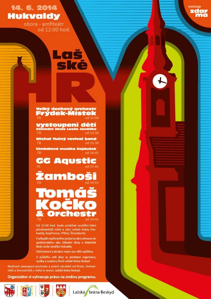 V sobotu 14. června 2014 se v amfiteátru hukvaldské obory uskuteční zábavně - soutěžní akce pro celou rodinu s názvem Lašské hry. Úderem 15:00 hodiny vypukne hlavní část programu - soutěžní klání představitelů měst a obcí Lašské brány (Hukvaldy, Kopřivnice, Příbor, Štramberk). Nejen pro děti budou připraveny atrakce a občerstvení.