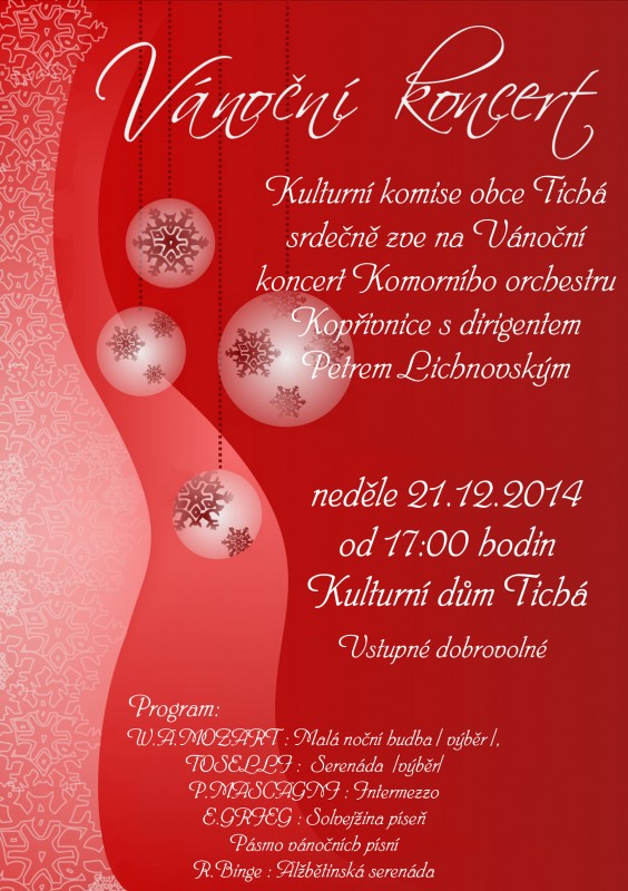 V úterý se můžete těšit na Vánoční koncert základní umělecké školy, naleznete zde nápady na Štěpánskou zábavu nebo můžete strávit Silvestr v muzeu! Podrobnosti naleznete v přiložených plakátech.