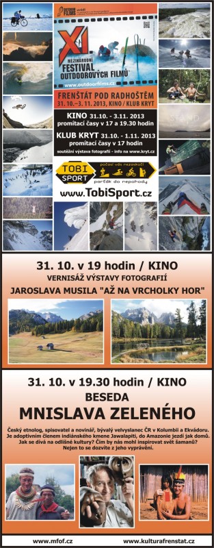 Ve Frenštátě p. R. proběhne od 31. října do 3. listopadu Mezinárodní festival outdoorových filmů. Jedná se o soutěžní putovní přehlídku filmů. Za 10 let své existence se stal největším filmovým soutěžním putovním festivalem nejen v České republice, ale také na světě. V letošním roce proputuje festival 43 českými a slovenskými městy a nově zavítá také do Ruska. Zaměření festivalu je na sporty i život s outdoorovou tématikou, na filmy dobrodružné, extrémní, adrenalinové a také cestopisné.