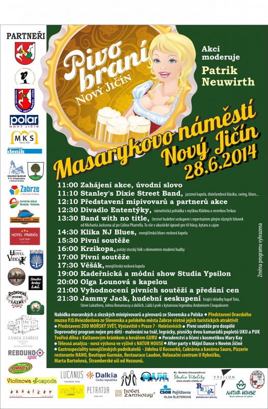 Bezmála dvacet minipivovarů z našeho regionu, ale též z Polska, Slovenska potěší milovníky zlatavého moku na druhém ročníku novojičínského Pivobraní, který proběhne v sobotu 28. června od 11:00 do 22:30 hodin na Masarykově náměstí v Novém Jičíně. Kromě nabídky mnoha druhů piv a gastronomických specialit novojičínských podnikatelů bude připraven bohatý doprovodný a hudební program např. Stanley's Dixie Street Band, Band with No Title, Klika NJ Blues, Jazzová kapela z Polska, Věšák, Kadeřnická módní show Studia Ypsilon, Olga Lounová s kapelou, Jammy Jack. Proběhnou soutěže pro dospělé i děti, tvořivá dílna s Kaštanovým krámkem, malování na tvář, animátorský program dvou kamárádů popletů UKU a PUK, představení ZOO Mořského světa z Prahy, divadla Ententýky a Oravského muzea P. O. Hviezdoslava ze Slovenska.