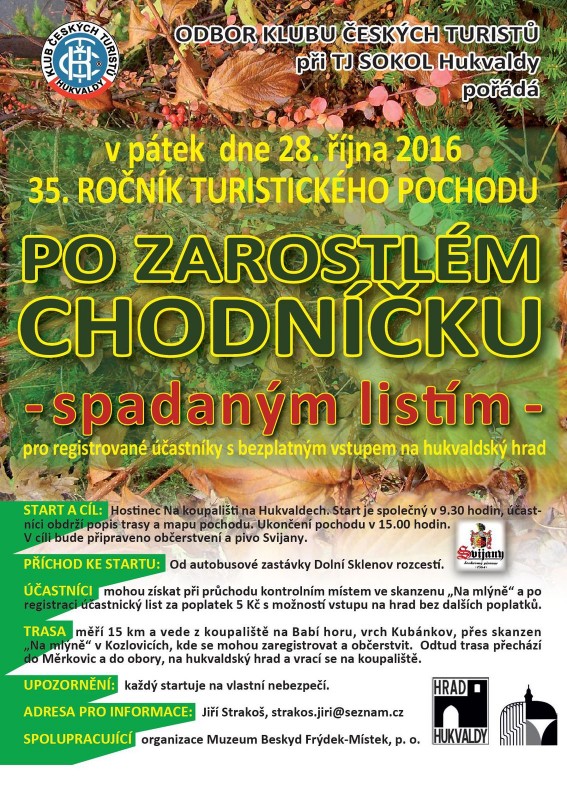 Klub českých turistů při TJ Sokol Hukvaldy pořádá v pátek 28. října již 35. ročník turistického pochodu Po zarostlém chodníčků, tentokrát spadaným listím.