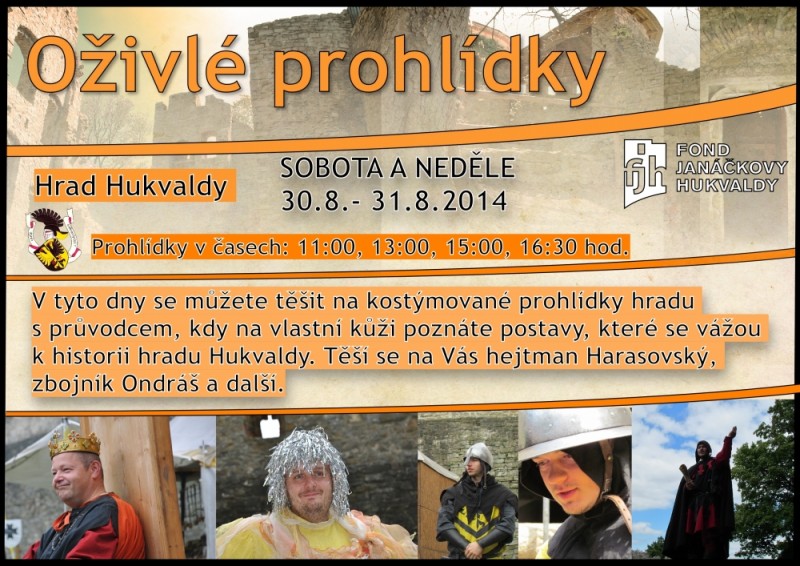 Tento víkend obživne historie na hradě Hukvaldy. V sobotu i neděli v časech 11:00, 13:00, 15:00 a 16:30 hodin zde budou probíhat kostýmované prohlídky hradu s průvodcem. Na vlastní kůži tak poznáte osoby, které se vážou k historii hradu a dozvíte se spoustu zajímavých věcí.