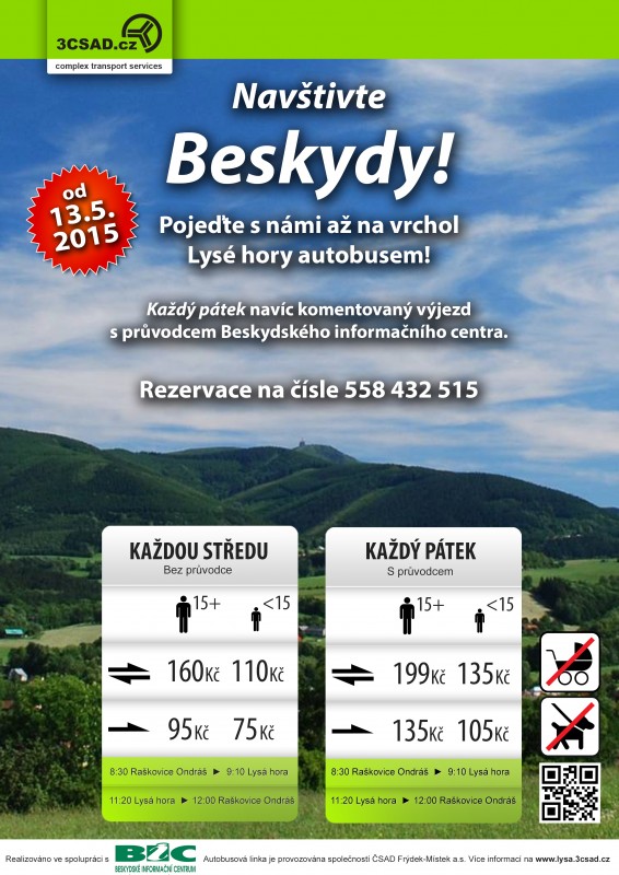 ČSAD Frýdek-Místek, a. s. vypraví i v letošním roce pravidelnou rekreační linku na nejvyšší vrchol Moravskoslezských Beskyd Lysou horu. První spoj vyjede ve středu 13. května 2015. Autobus bude jezdit pravidelně vždy ve středu a v pátek. Páteční výjezdy budou navíc ozvláštněny výkladem průvodce Beskydského informačního centra Frýdek-Místek, p.o, který vás provede i po vrcholu Lysé hory. Tato linka bude jezdit poté až do konce září.