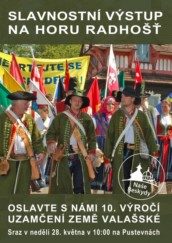 V poledne bude vyzvánět zvon ve zvonici kaple sv. Cyrila a Metoděje na památném Radhošti. V květnu roku 2007 byl uložen dekret o uzamčení země Valašské do základů této památky. Dvacet šest beskydských obcí a spolků, zastupujících téměř 200 000 lidí, tímto aktem vyjádřilo svůj nesouhlas se záměry těžit uhlí v Beskydech. Tehdy, přesně před 10 lety, vynesl pod prapory jednotlivých měst a obcí dekret z Pusteven na Radhošť průvod několika stovek lidí, v jehož čele kráčel regiment Portášů. Ani letos nebudou chybět krojovaní Valaši, členové Valašského sboru portášského a velice vzácní hosté.