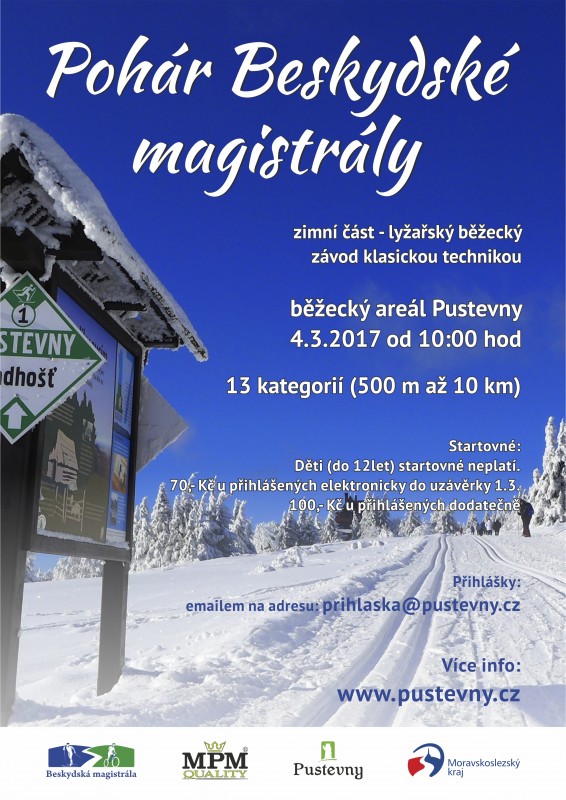 Probuďte v sobě soutěživého ducha a přijeďte si v sobotu 4. 3. 2017 zazávodit v zimní části závodu Pohár Beskydské magistrály, jehož zajímavostí je, že se dohromady počítají výsledky jak právě ze zimní běžkařské části, tak z té letní, kdy se závodí v cyklistice.