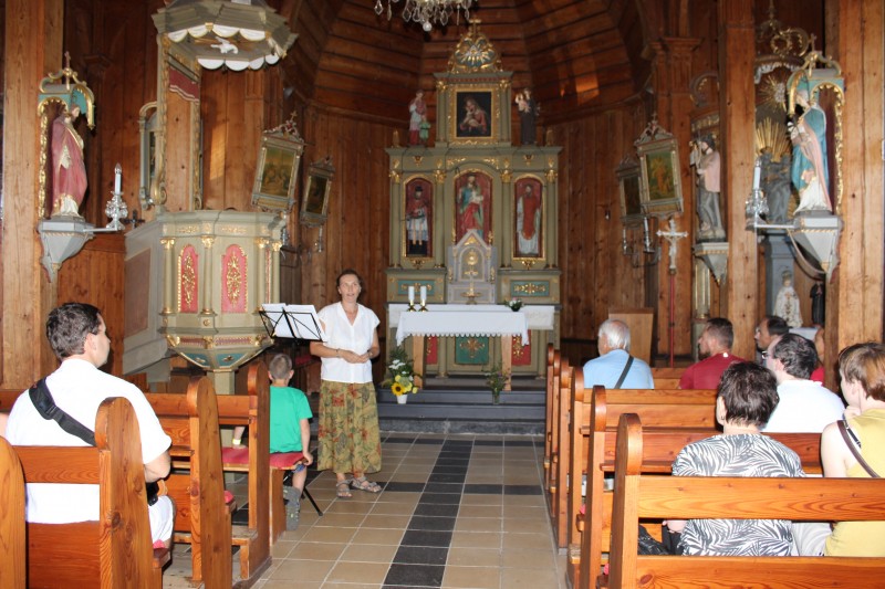 V dřevěném kostelíku Panny Marie pomocné návštěvníci vyslechli poutavé informace o historii tohoto místa i kostela, zaposlouchali se do nádherných tónů varhan a houslí.