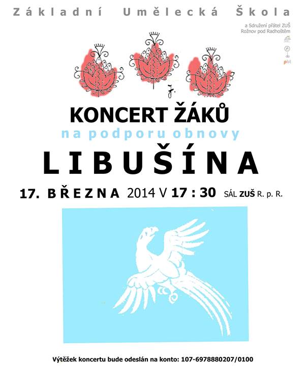 V pondělí můžete přijít podpořit obnovu objektu Libušína na Pustevnách na koncert žáků ZUŠ, od 17:30 v sále ZUŠ.