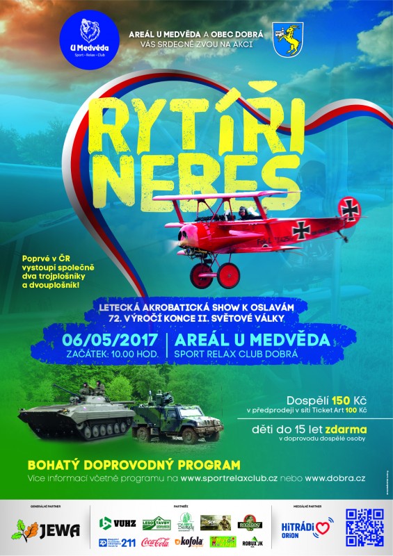 Rytíři nebes ovládnou nebe nad Dobrou v sobotu 6. května 2017. Tato letecká akrobatická show s programem se koná u příležitosti oslav 72. výročí ukončení II. světové války.