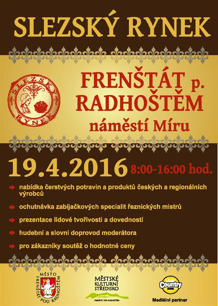 Spolek českých výrobců a zemědělců pořádá za podpory města Frenštátu pod Radhoštěm a ve spolupráci s Městským kulturním střediskem další ročník předváděcí a prodejní akce českých a regionálních farmářských potravinářských výrobků, produktů, výpěstků a služeb. Slezský rynek je nově obohacen o moderovaný kulturní program.
