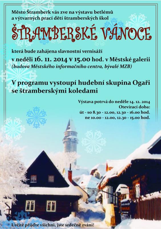 Výstava betlémů a výtvarných prací dětí štramberských škol. Vernisáž proběhla v neděli 16. listopadu a výstava potrvá až do 14. prosince v Městské galerii ve Štramberku.