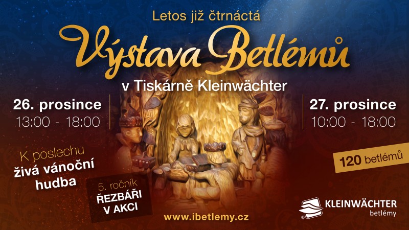 Tradiční výstava betlémů ve Frýdku-Místku proběhne letos již po čtrnácté. V průběhu dvou dnů tak budou mít návštěvníci možnost shlédnout až 120 betlémů pod jednou střechou. Výstava se bude konat v Tiskárně Kleinwächter v Místku v pondělí 26. 12. 2016 od 13.00 do 18.00 hodin a v úterý 27. 12. 2016 od 10.00 do 18.00 hodin.