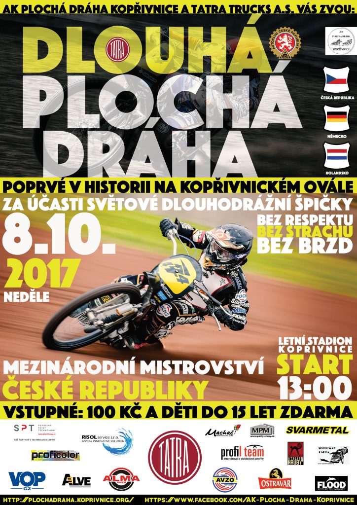 Poprvé v celé historii české ploché dráhy se pojede Mistrovství České republiky na dlouhé ploché dráze jinde než v Mariánských lázních. O titul bude nejen česká elita bojovat v neděli 8.10.2017 od 13 hodin na kopřivnické ploché dráze.