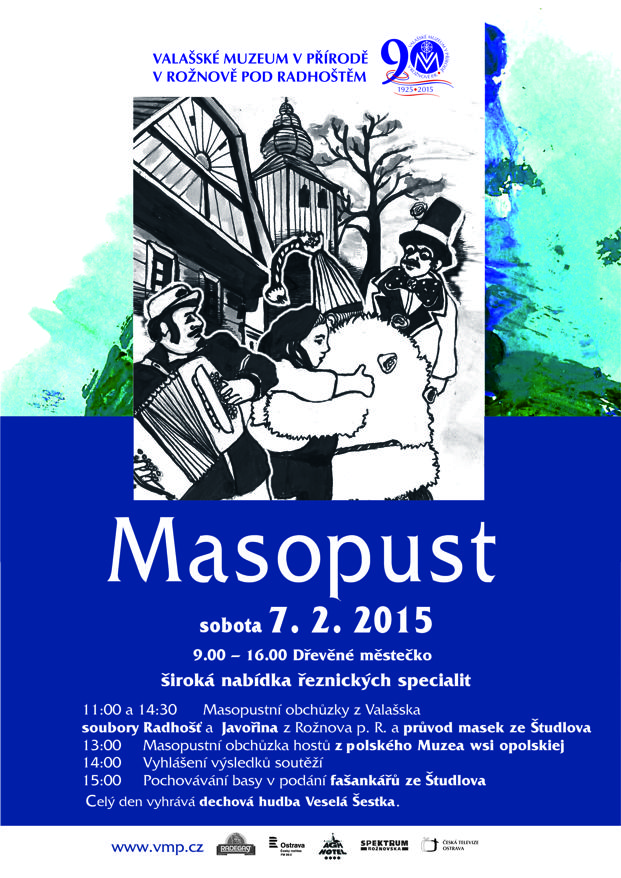 V sobotu 7. 2. 2015 v Dřevěném městečku od 9.00 do 16.00 se můžete zúčastnit masopustních obchůzek nejen z Valašska a ochutnat z pestré nabídky zabijačkových výrobků, kterou pro vás připravili mistři řeznického řemesla.