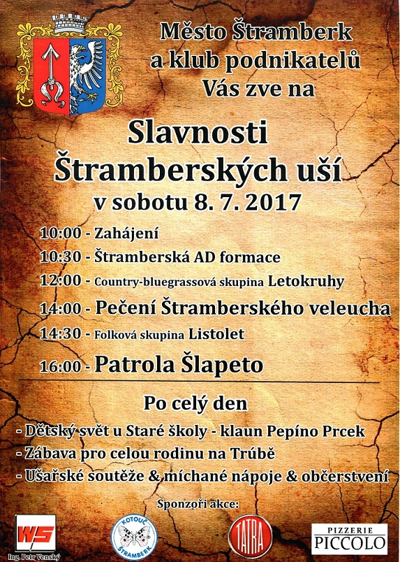 Během dne se můžete na štramberském náměstí těšit na vystoupení country-bluegrassové skupiny Letokruhy, folkové skupiny Listolet nebo Patrola Šlapeto. Pro děti U staré školy je přichystán Dětský svět s klaunem Pepínem Prckem. Pro děti i dospělé jsou připravené ušařské soutěže, míchané nápoje a občerstvení.