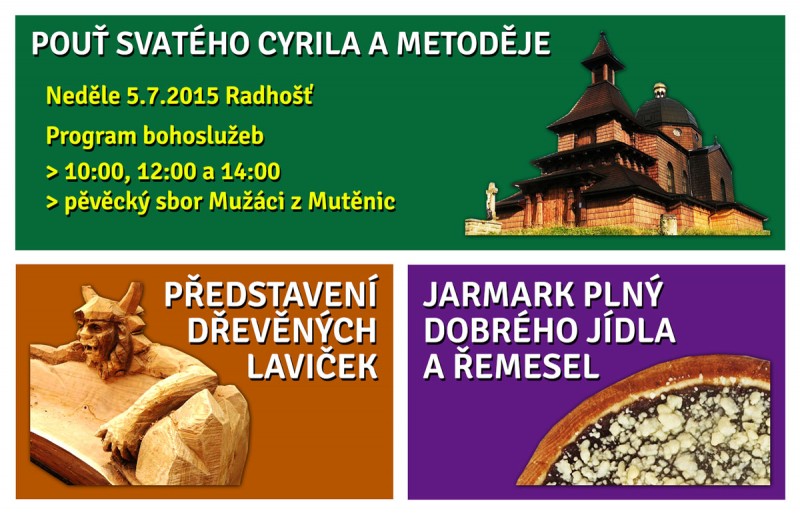 Vydejte se na tradiční Cyrilometodějskou pouť, která se koná v neděli 5.7.2015. Bohoslužby v kapli na Radhošti začínají v 10:00, ve 12:00 a ve 14:00. Polední bohoslužbu bude přenášet i TV NOE. Poslechnout si můžete pěvecký sbor Mužáci z Mutěnic.