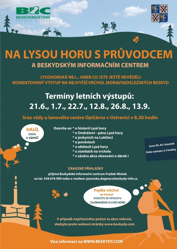 Akce se koná pouze v případě příznivého počasí, sledujte proto webové stránky Beskydského informačního centra Frýdek-Místek www.beskydy.com nebo také na Facebooku! Hledejte nás pod Beskydské informační centrum.