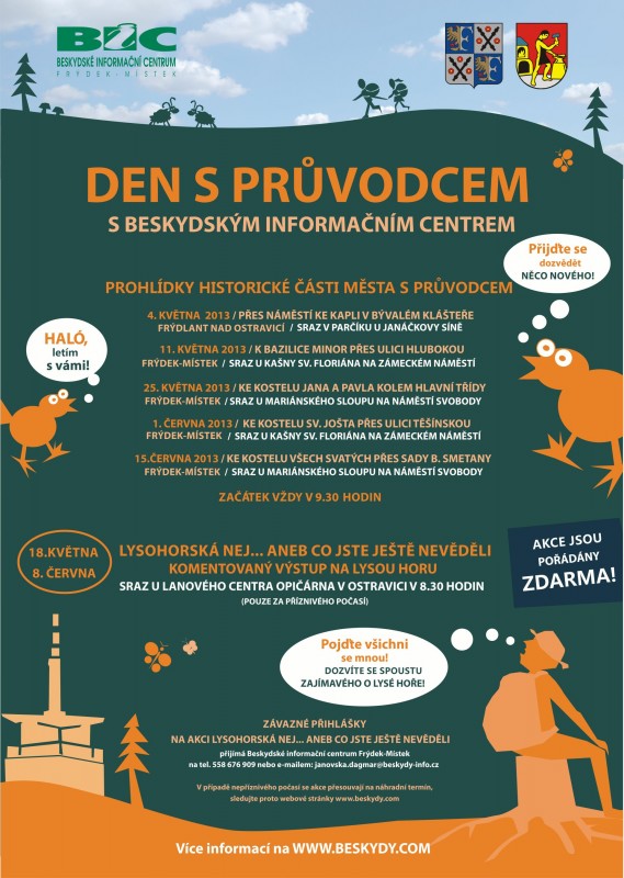Prohlídky se konají vždy od 9.30 hodin. V případě velmi nepříznivého počasí se Den s průvodcem nekoná, sledujte proto webové stránky www.beskydy.com. Vstupné ZDARMA.