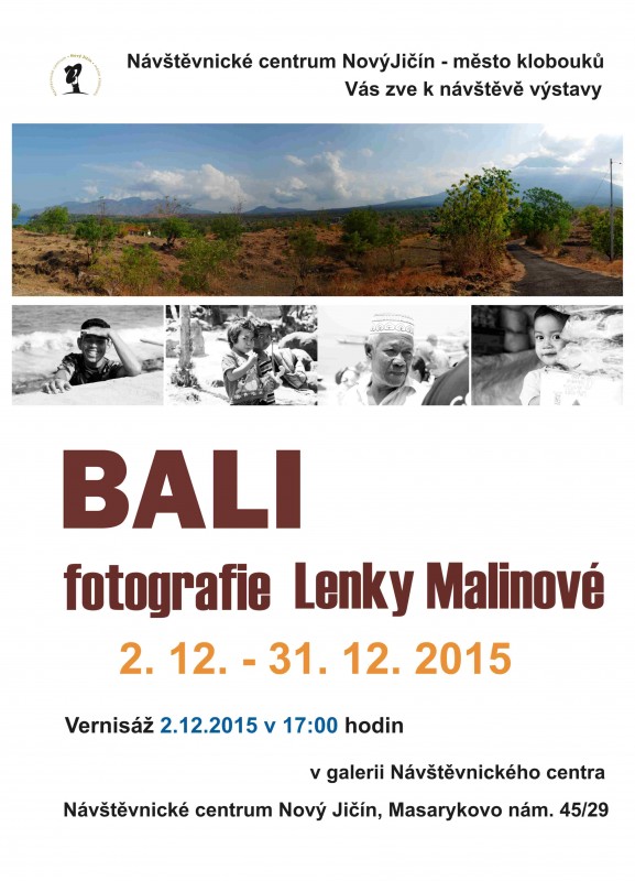 Jste srdečně zváni na dvě nové výstavy. Návštěvnické centrum Nový Jičín - město klobouků a Lenka Malinová si Vás dovolují pozvat na výstavu fotografií s názvem "BALI". Výstava bude k vidění v galerii Návštěvnického centra od 2. do 31. prosince 2015. Vernisáž proběhne 2. 12. od 17:00 hod. v galerii Návštěvnického centra.