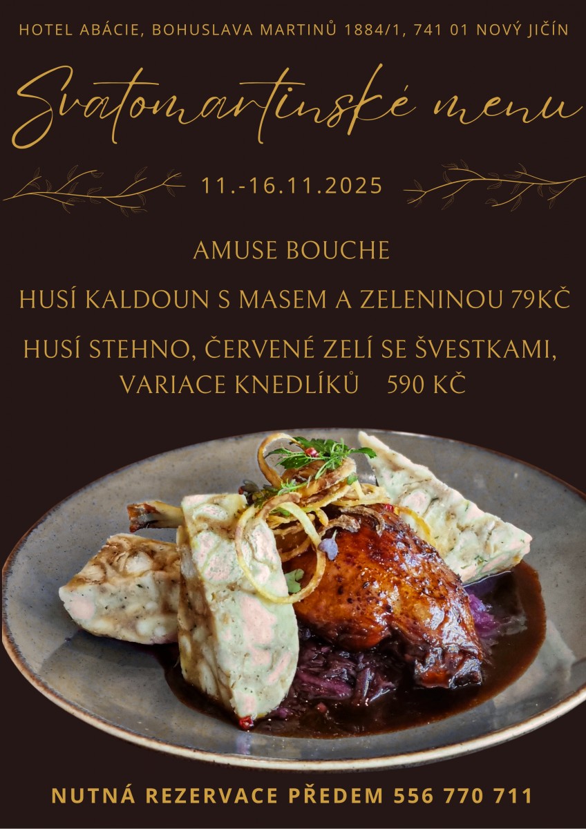 Nutná rezervace předem: 556 770 711, www.hotelabacie.cz