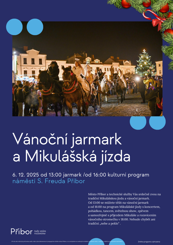 Srdečně zveme na rozsvícení vánočního stromečku spojeného s Mikulášskou jízdou v Příboře.