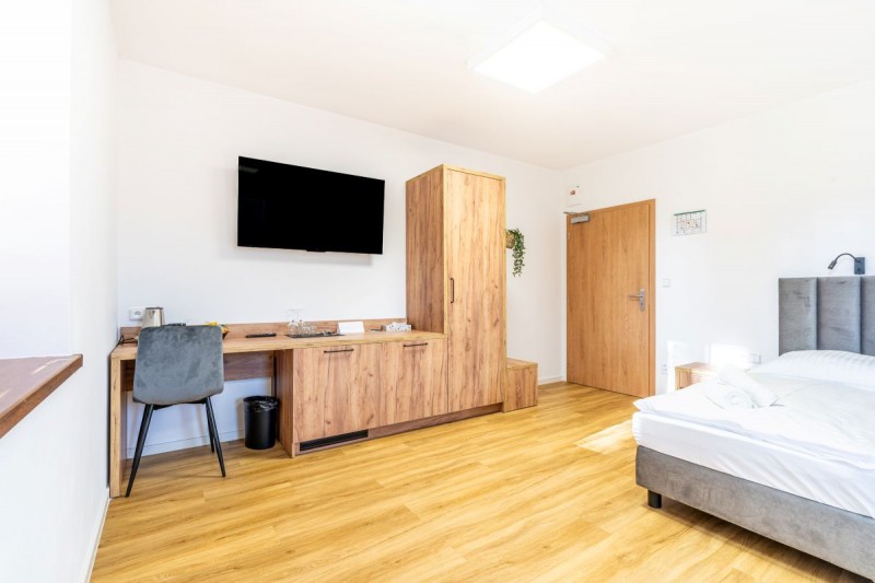 Nyní můžeme nabídnout kapacitu 43 pokojů a společenskou místnost s TV, určenou pro snídaňový servis, volnou zábavu během dne, ale také k pořádání nejrůznějších akcí. V celém penzionu je k dispozici vysokorychlostní WIFI připojení a součástí exteriéru je oplocené parkoviště s 30 místy k parkování.